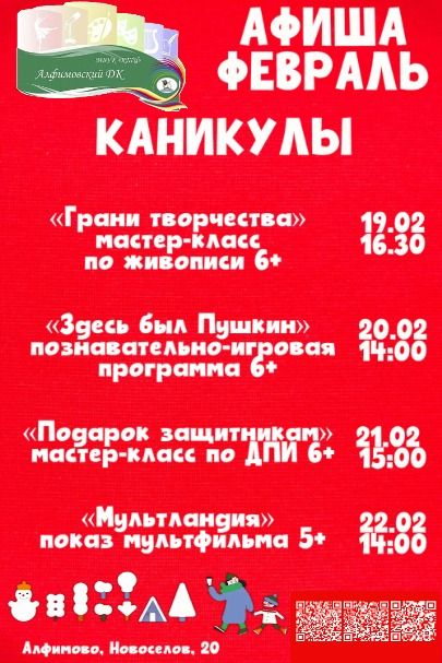 8 февраля сотрудники Алфимовского Дома культуры провели мастер- класс "Акварельная поляна" по живописи. Мастер-класса по изобразительному искусству, это не только творческое событие, но и возможность погрузиться в умиротворенную и гармоничную атмосферу искусства, где каждый может найти уникальный путь выражения себя через краски и формы.